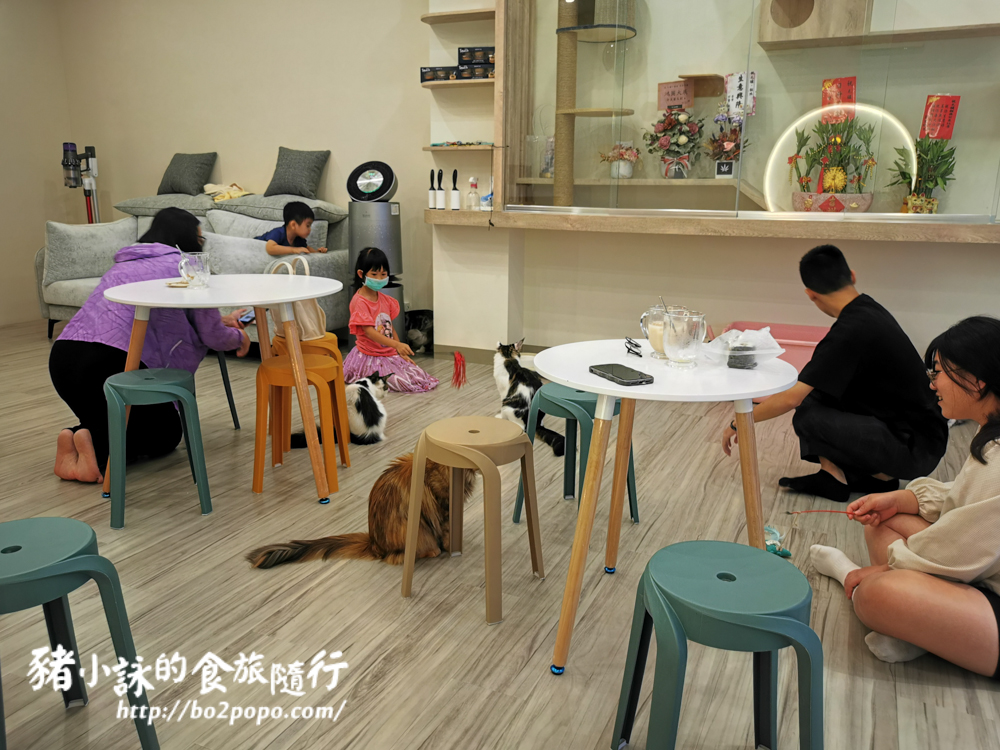 不少客人甜點飲料沒吃上幾口,就被可愛的貓咪們吸引過去。
