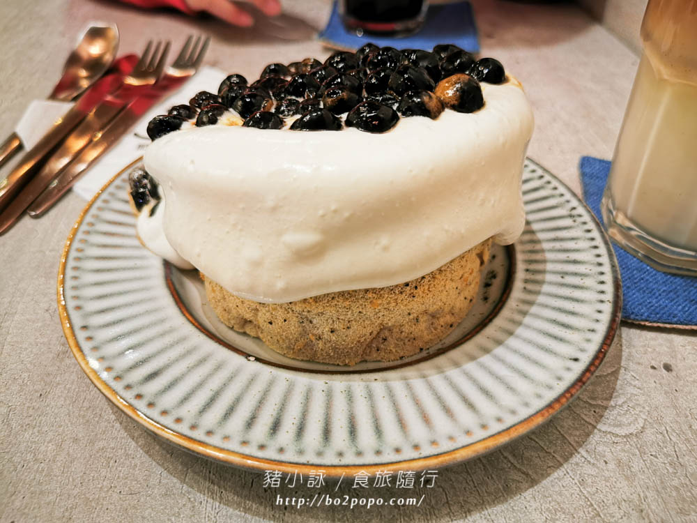 蛋糕跟裹著珍珠顆粒的奶油很合搭,整體不會很甜膩,個人蠻喜歡的。