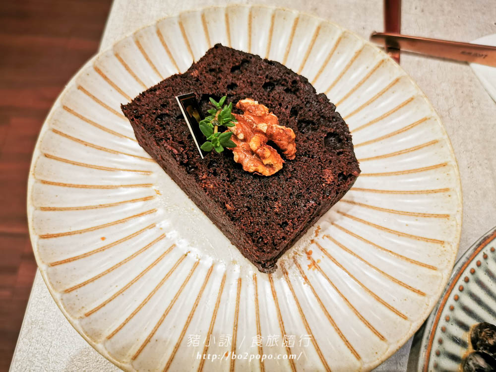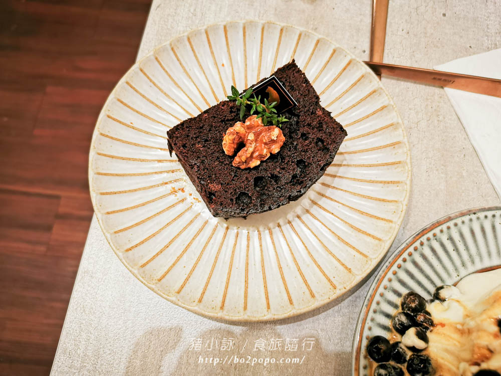 布朗尼蛋糕體跟戚風相比口感略乾,帶有些許苦味的巧克力味濃郁,