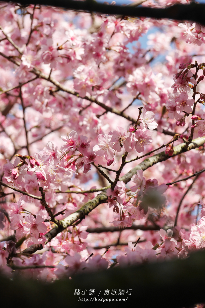 樟樹湖河津櫻王(櫻榖王茶亭)每年櫻花盛開期約莫在一月底到二月多。