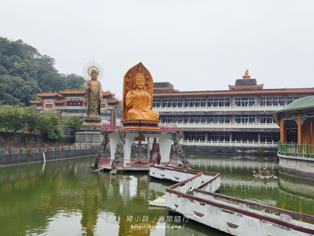 湖中的莊嚴肅穆的千手觀音神像及大佛坐像。