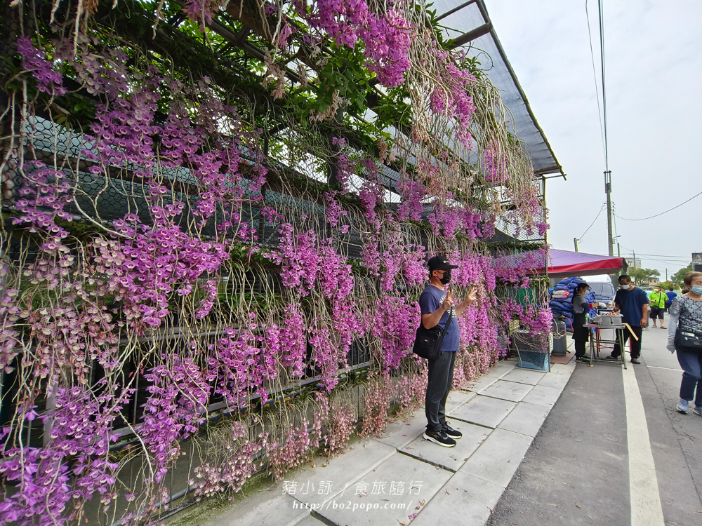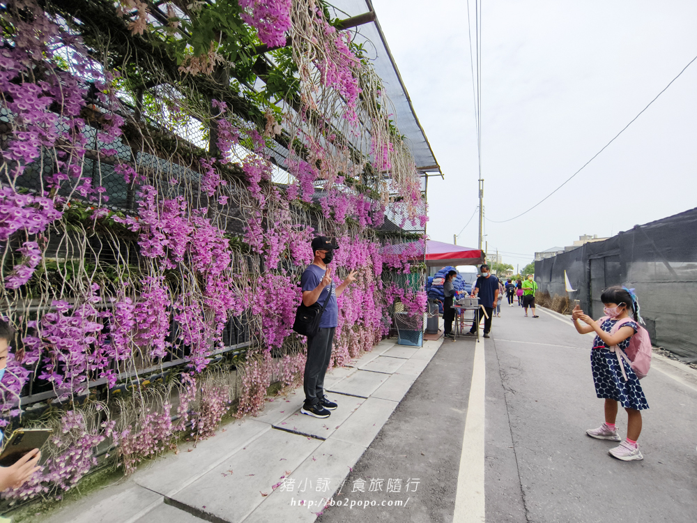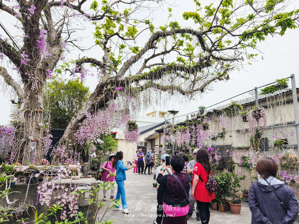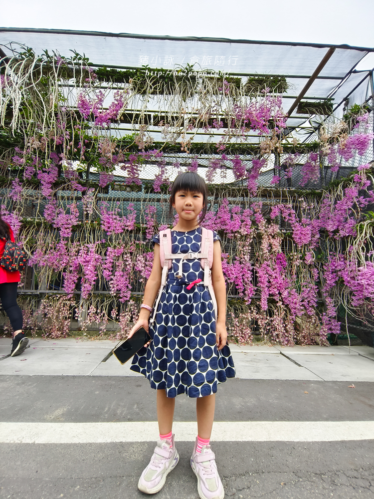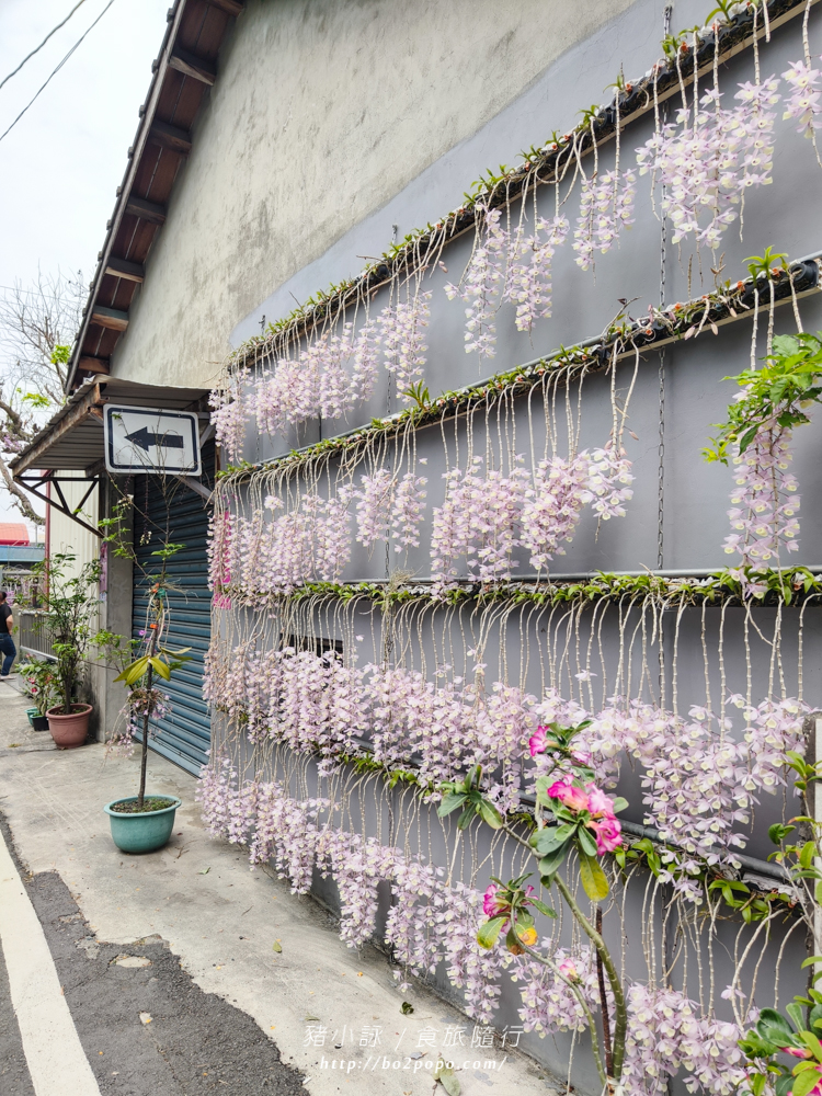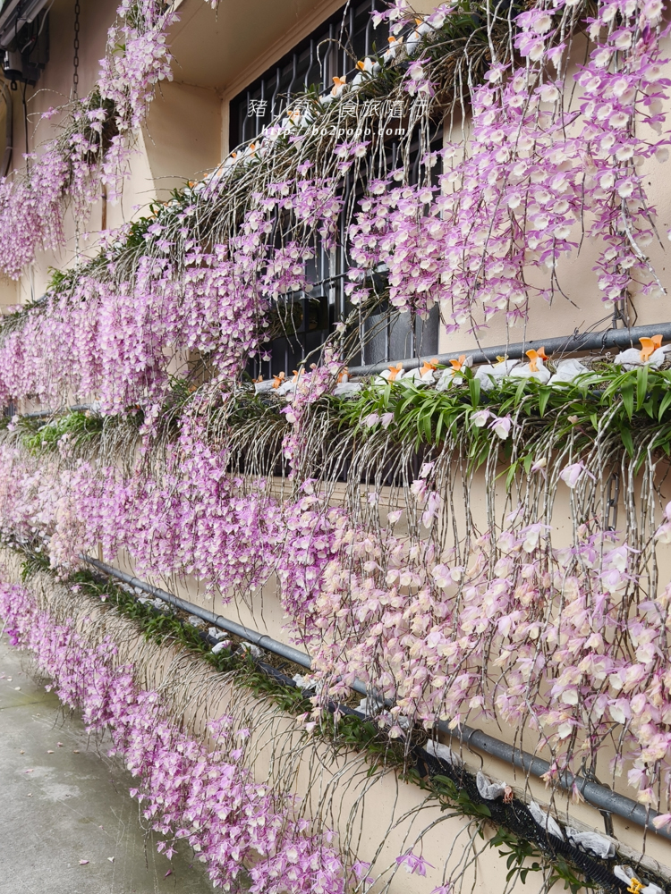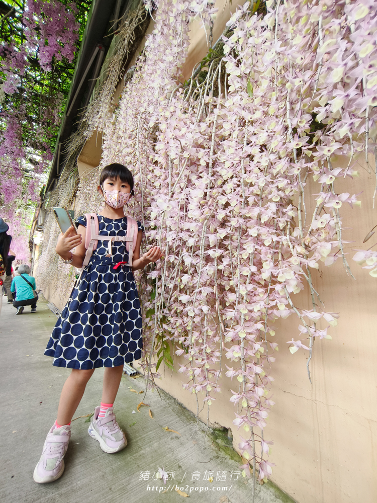 廟前方這片是所謂初代瀑布蘭花牆,也吸引不少遊客駐足合影。