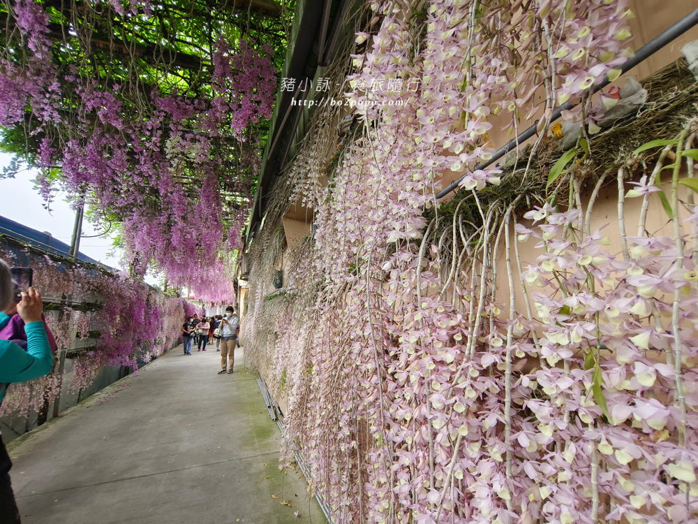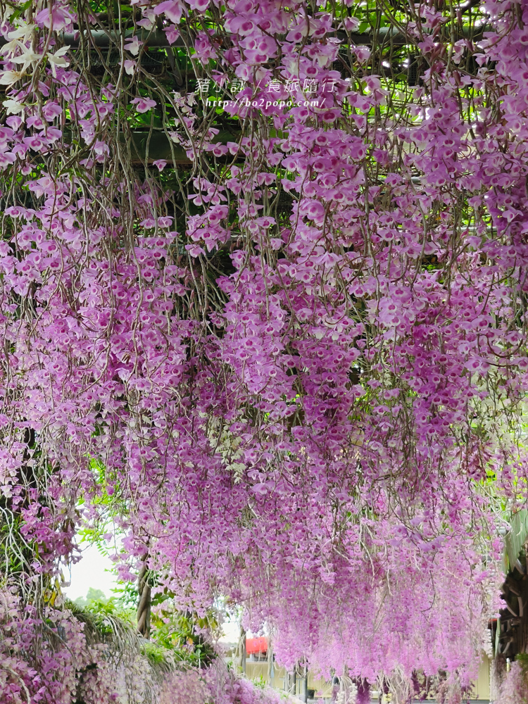 廟方種植了約6萬朵的石斛蘭,一串串像瀑布流水般垂吊而下的花穗,