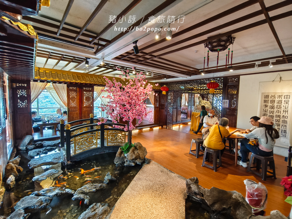 步入貓空四爺,木質窗框搭配小橋流水,映入眼簾的是那古色古香的中式庭園風。