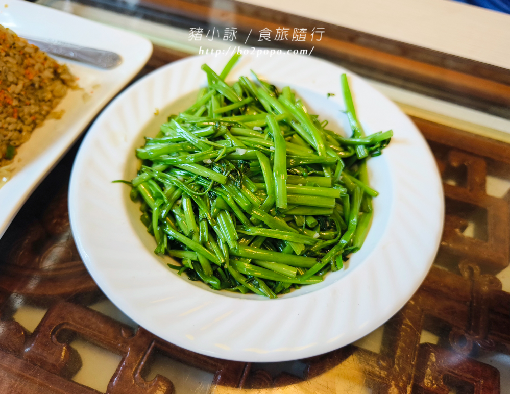 翠綠的菜葉在燈光下閃耀著誘人的光澤,蒜香撲鼻而來,卻不顯嗆鼻。入口能感受到空心菜的脆嫩與飽滿的水分,蒜香溫和地纏繞舌尖,而那股恰到好處的鑊氣,更是將其提升至一個新的層次。沒有過多的油膩感,也沒有過鹹的調味。