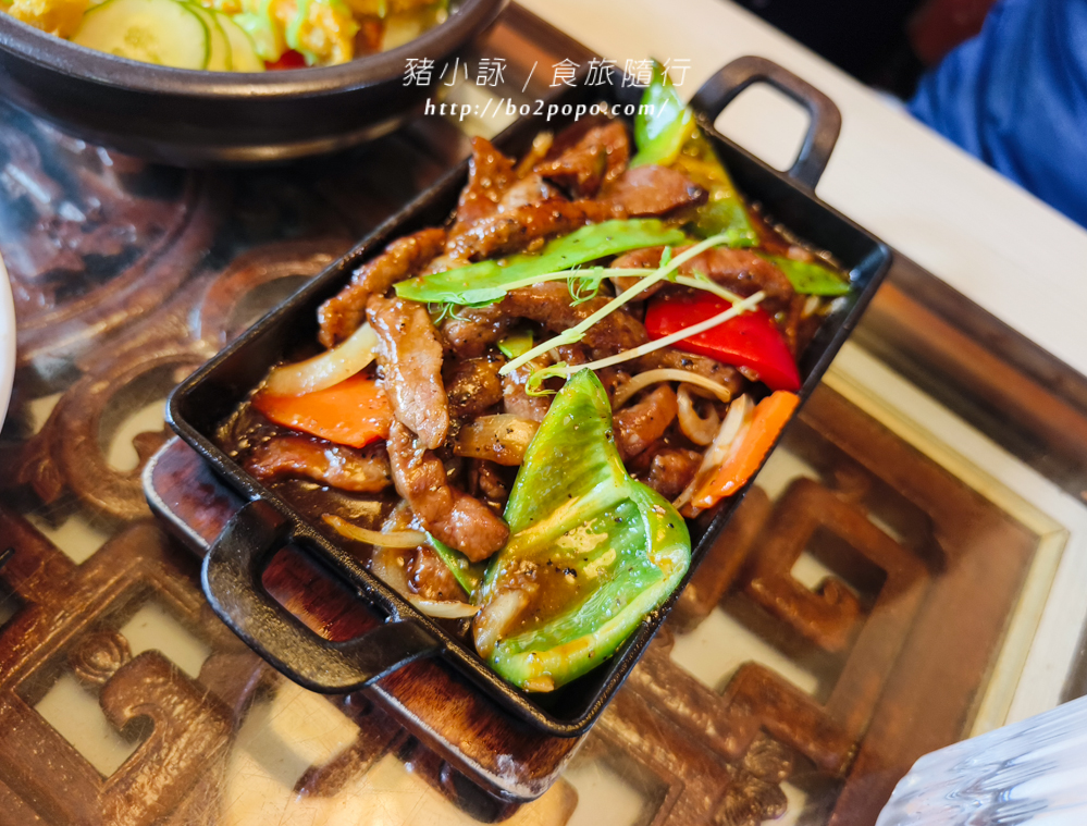 一上桌熱氣滋滋作響散發出濃郁的醬香。切成條狀的牛柳均勻地裹上深色的醬汁,搭配鮮甜的洋蔥與青椒。牛柳的軟嫩程度恰到好處。醬汁鹹甜適中,巧妙地襯托出牛肉本身的鮮美,而鐵板的高溫則賦予了食材邊緣微微的焦香,為口感增添了層次。