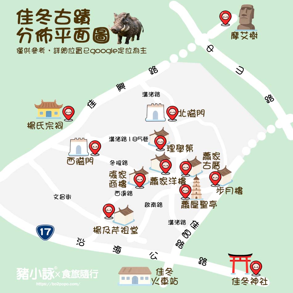 • 景點:屏東。佳冬》古蹟巡禮(蕭家古厝、蕭屋洋樓、理學第(豫章堂)、張家商樓、蕭屋聖亭、步月樓、楊及芹祖堂、西隘門、北隘門、楊氏宗祠、摩艾樹)