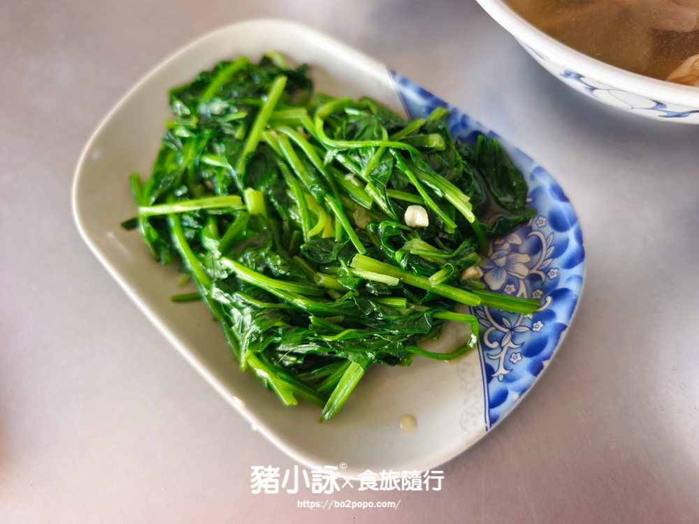 當天上桌的是菠菜,簡單的燙青菜,淋上少許鴨油和蒜蓉,清爽解膩。