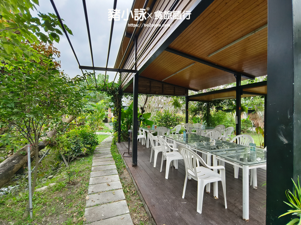 農場設有室內和戶外的用餐休憩區。戶外庭園綠意盎然,而室內餐廳則環境舒適,是躲避屏東熱情陽光的好去處。這裡的餐點特色就是將食用玫瑰融入料理中,帶來視覺、嗅覺和味覺的多重享受。