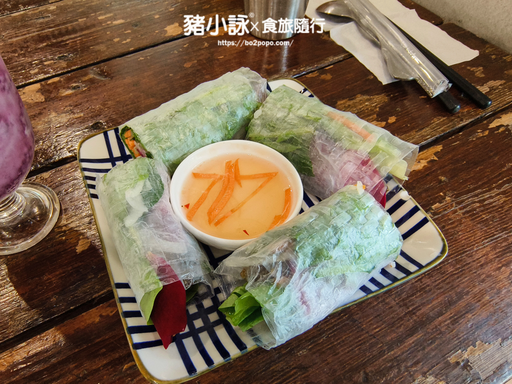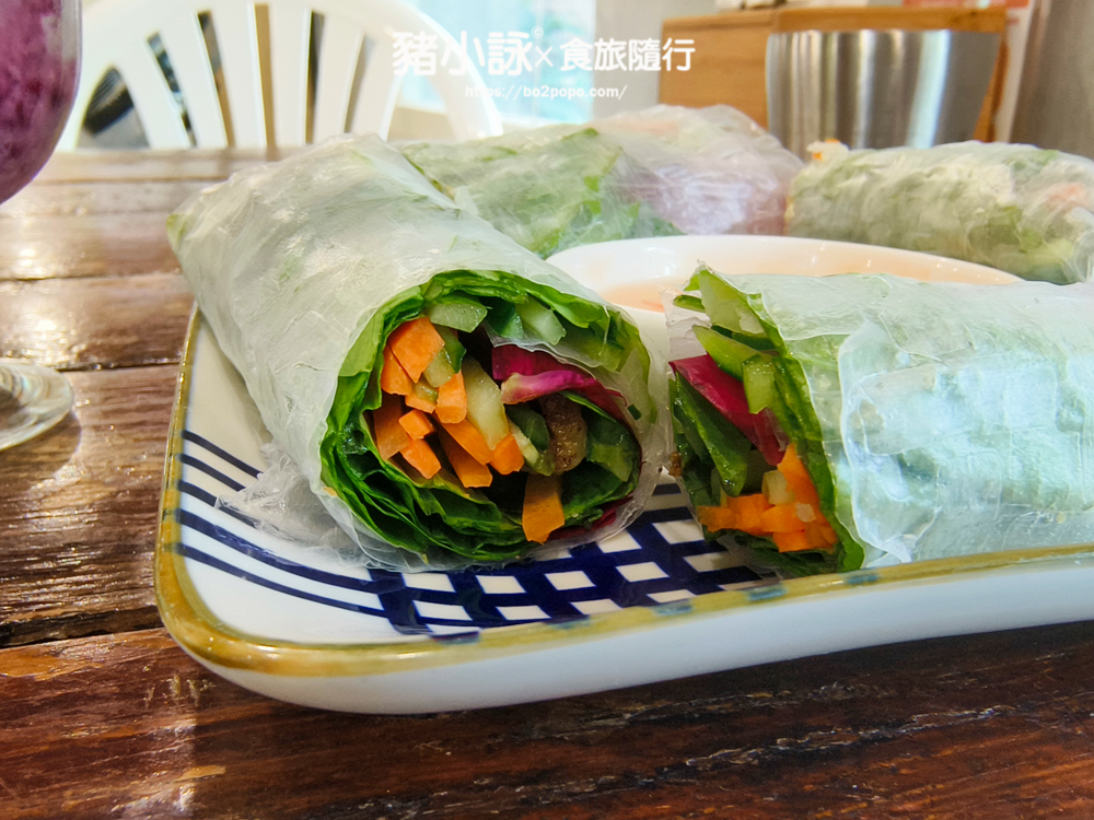 鹹豬肉南洋春捲則是另類的風味,鹹豬肉搭配新鮮的蔬菜,沾上東南亞的酸甜醬料,口感層次豐富,是比較清爽的味道。