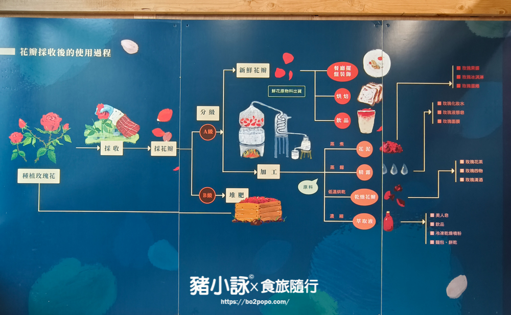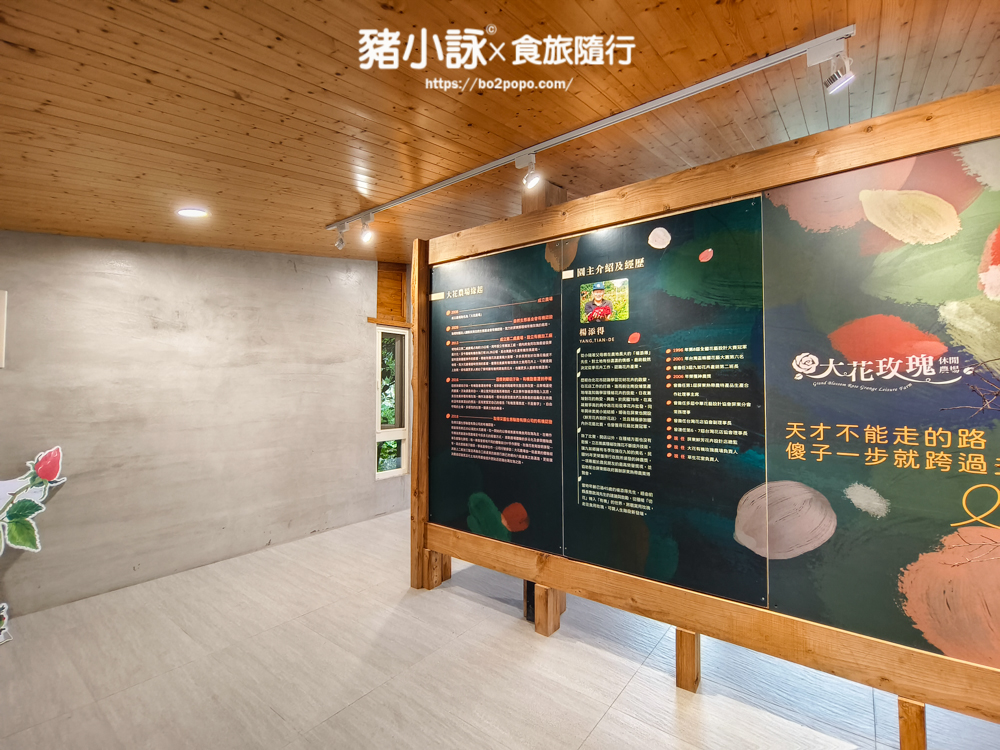 館內設有展區,透過圖文或影片介紹農場的發展沿革,包含從傳統農業轉型至有機玫瑰種植的歷程與理念。此外,館內也提供專業的玫瑰種植知識,包括如何辨識食用玫瑰、有機栽種的工法、以及玫瑰花多酚的萃取過程。