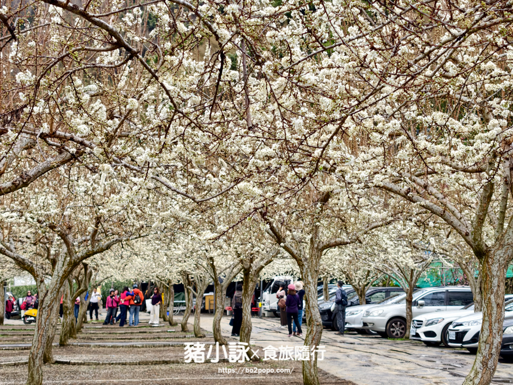 白色田園被譽為全台最美停車場。停車場種滿李花,盛開的時那一片白煞是好看,是攝影愛好者必拍的經典視角。