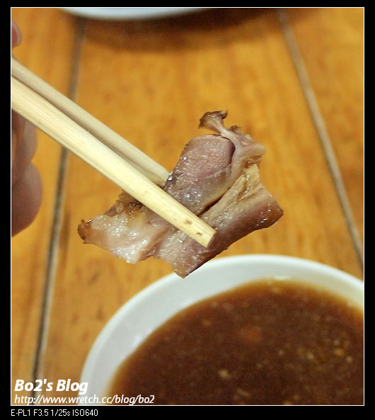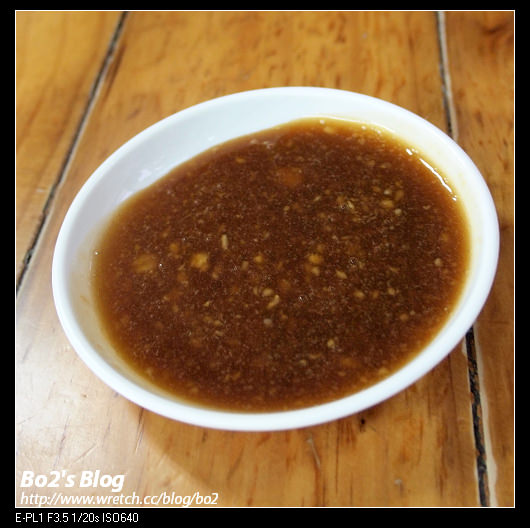 就像前頭說的,口感稍硬了點,不過滷的還算夠入味,雖然我討厭吃肥油部份,但林家的豬腳外皮Q彈不油膩,吃起來不會有討厭的感覺。沾上有蒜泥的醬油膏沾醬,更能提味。