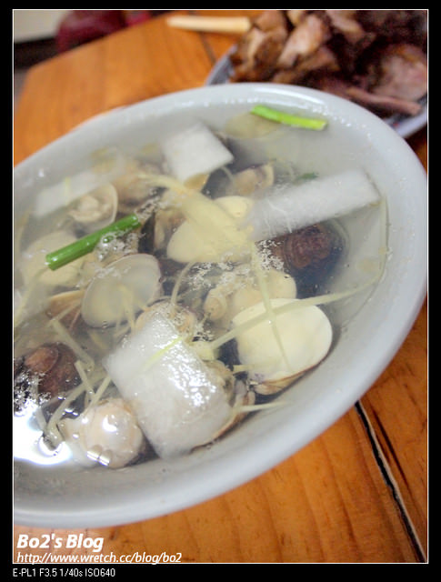 蛤蠣湯除了蛤蠣,裡頭還有切片的冬瓜跟薑絲,湯頭清澈但卻不清淡,潮濕的下雨天,來上一碗這樣的湯也不錯。—————–【小詠美食度量表】☆此為個人主觀看法..僅供參考☆美味度:★★★★☆