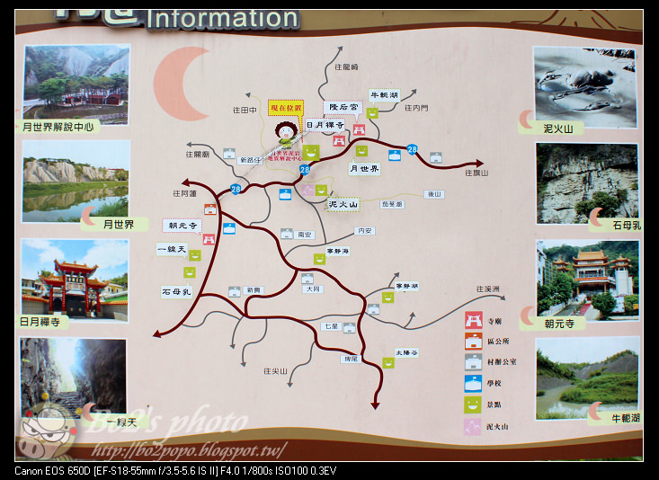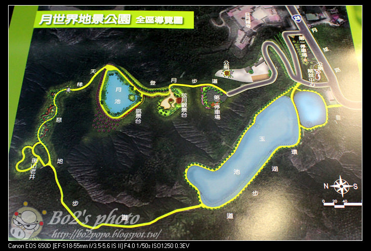 園區內幾個比較主要的景點,有環湖步道/惡地形/後山老井/天梯/月池/弦月觀景台等等。
