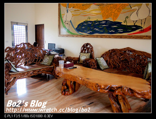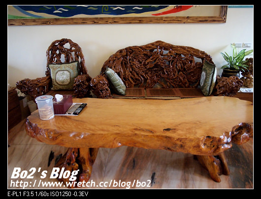 民宿外頭還有木製座椅,要不是那陣子都是雨天,