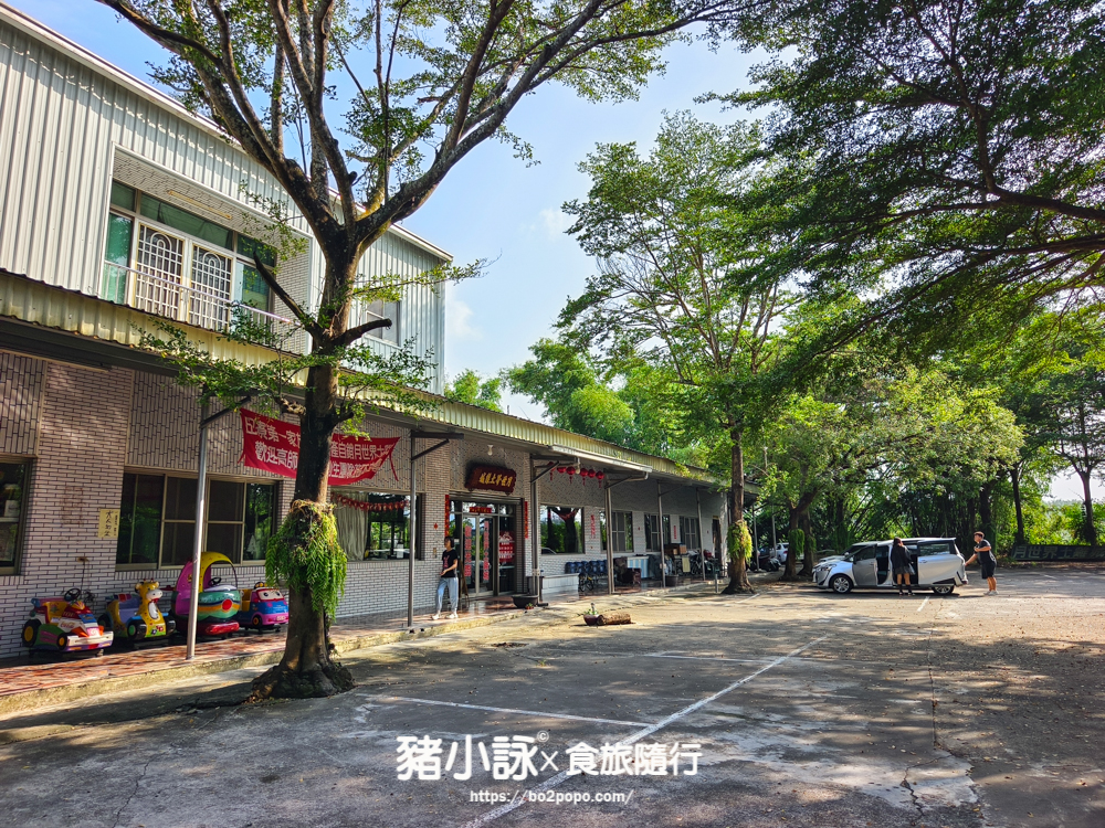 雖然這家月世界土雞城的所在地有點偏山區,不過還算好找,下二高田寮交流道後,接台28線往旗山美濃方向,開一段路,路邊就會看到月世界土雞城的綠色招牌,直接進入即可,只是入口處斜坡坡度蠻陡的,需要小心駕駛,停車位蠻多格的,不用煩討停車的問題。