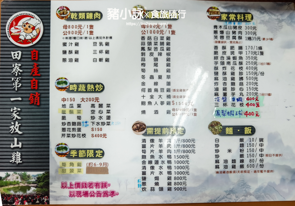 土雞城就專賣雞料理,當然還有熱炒,因為田寮偏山區,還有山產類等菜色。