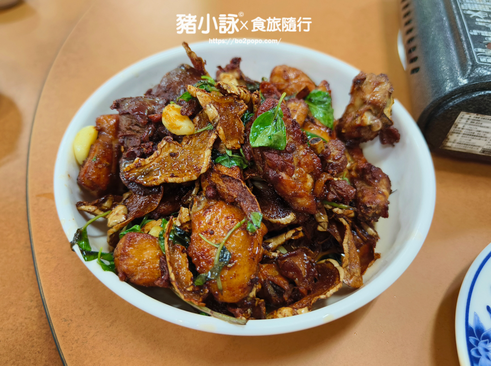 三杯雞算是蠻經典的台菜。醬油、麻油、米酒交織而成的濃郁香氣撲鼻,熱騰騰的鐵鍋裡,雞肉塊裹著油亮醬汁,光看就讓人食指大動。夾起一塊,雞肉Q彈有勁,每一寸肌理都吸飽了三杯醬汁的精華,鹹甜適中,尾韻帶著麻油的溫潤與米酒的甘醇。