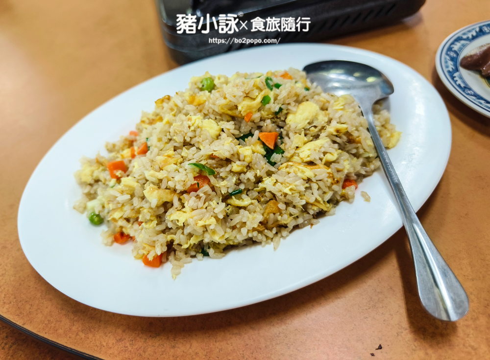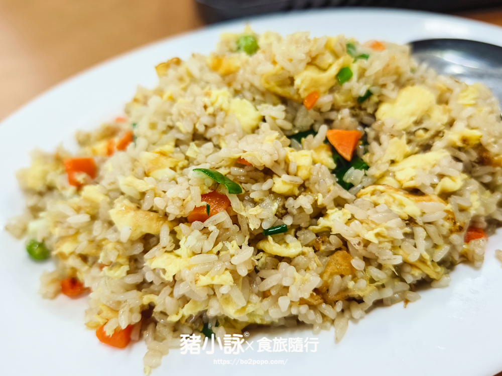 米飯粒粒分明,炒得入味,帶著恰到好處的鑊氣,而那看似平凡的三色豆(玉米粒、青豆、紅蘿蔔丁),提供了豐富的色彩與口感,是那種讓人一吃就停不下來,記憶點十足的家常炒飯。