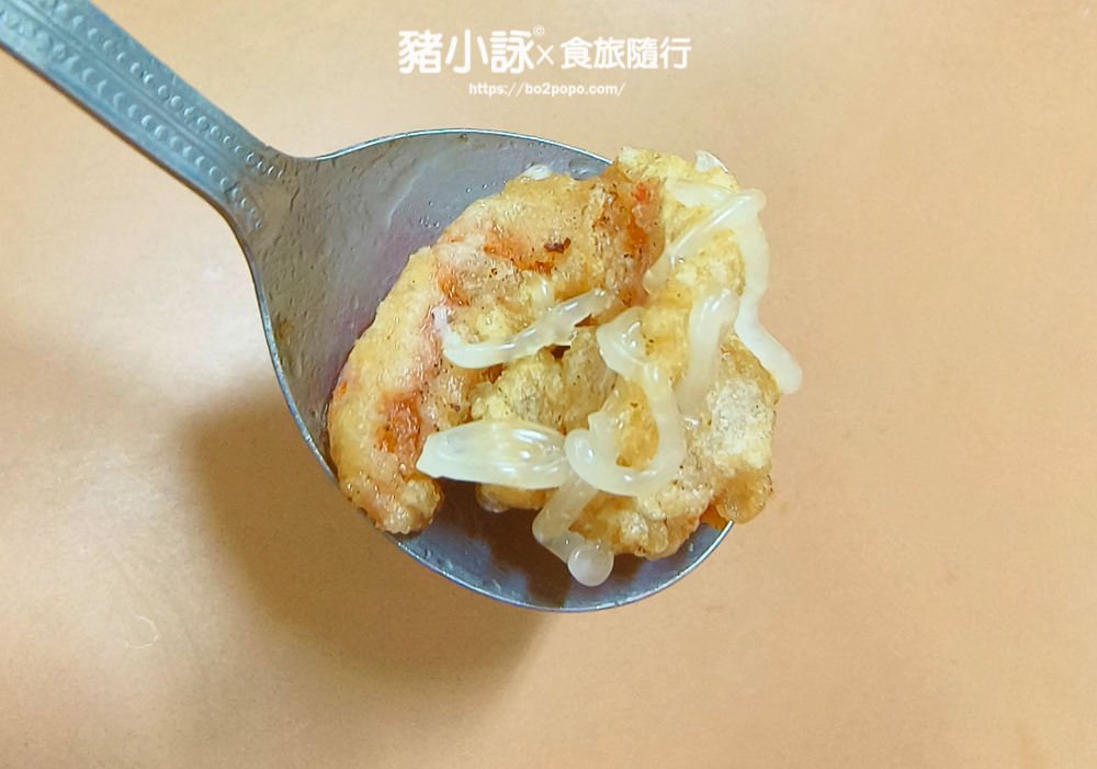 炸得金黃酥脆的蝦球,口感Q彈(不過我個人覺得這吃起來應該是冷凍蝦),裹上甜中帶酸的美乃滋,再搭配清爽的鳳梨塊。