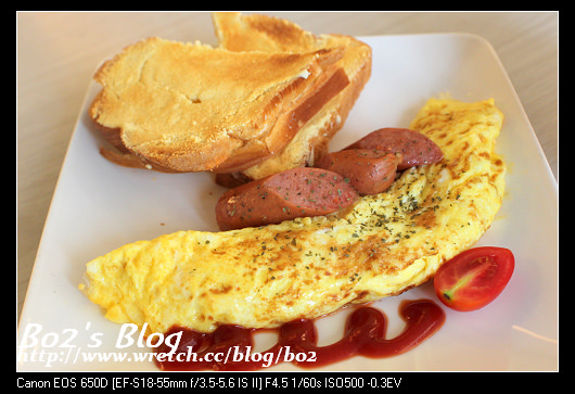 我同事選的是”洋蔥歐姆蛋+德式香腸”,
