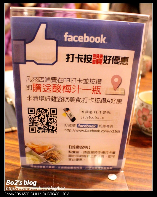 打卡按讚有優惠這最近正夯,來好雞婆用餐打卡按讚,就送酸梅汁一瓶。