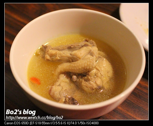 加了九尾草的雞湯,湯頭喝起來很順口,不會很油膩,雞肉肉質也頗有彈性,