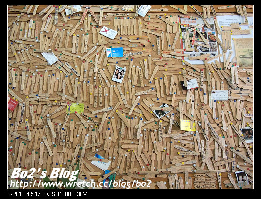 內部幾乎沒有裝潢,不過牆上貼滿冰棒棍的留言版反倒是個特色呢。