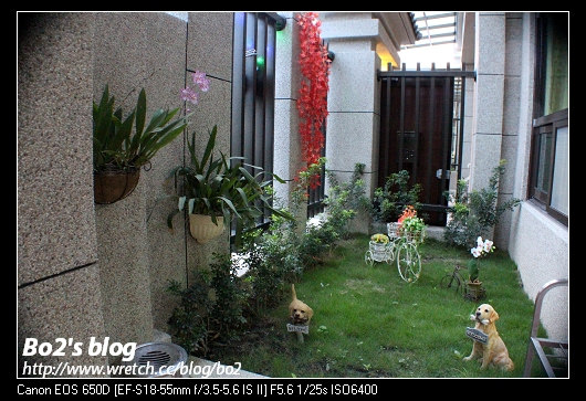 每棟別墅入口有一個小小的,佈置的很可愛的庭院。