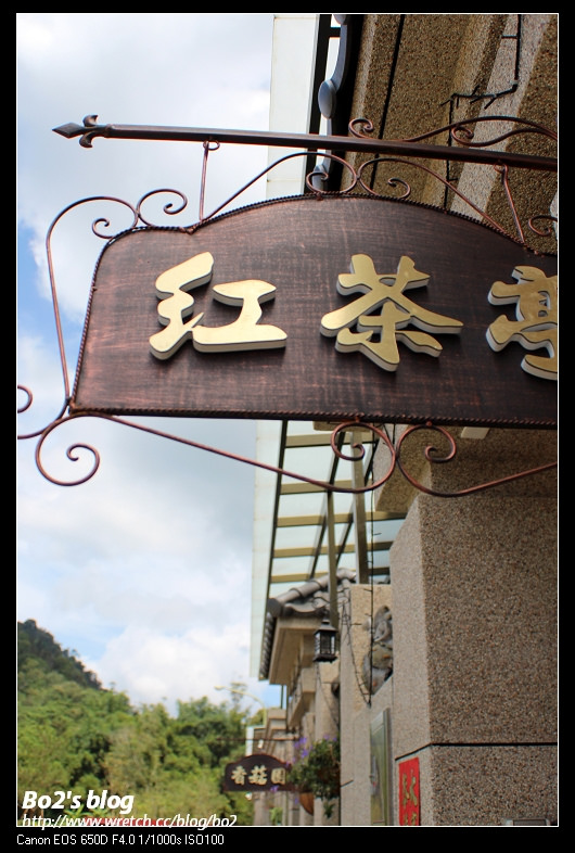 分別命名蘭花居、咖啡屋、紅茶亭和香菇園。我猜,應該是以日月潭名產來命名的吧。