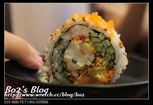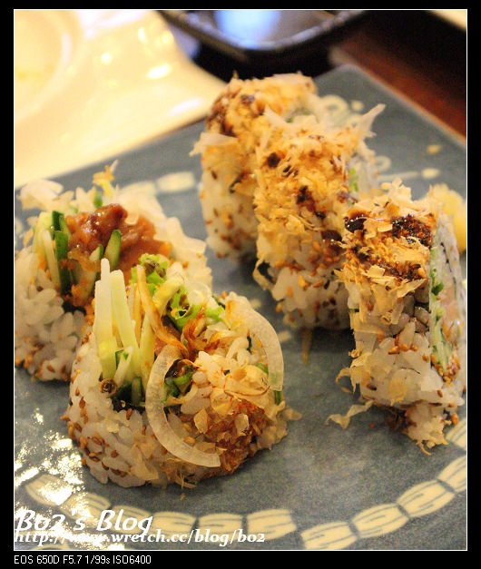 也是創意壽司捲,雞肉有醃過,雖沒有軟殼蟹那般絢麗,但味道也挺不錯。