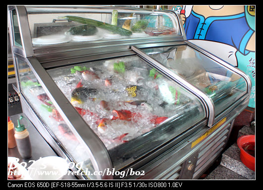 有趣的是,雖說是豬腳店,店門口卻放了一個海產店才會有的冷凍魚貨冰櫃,
