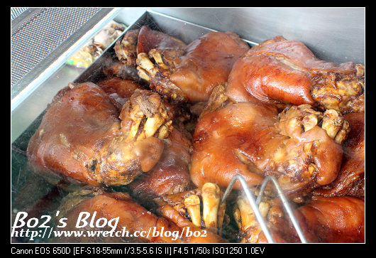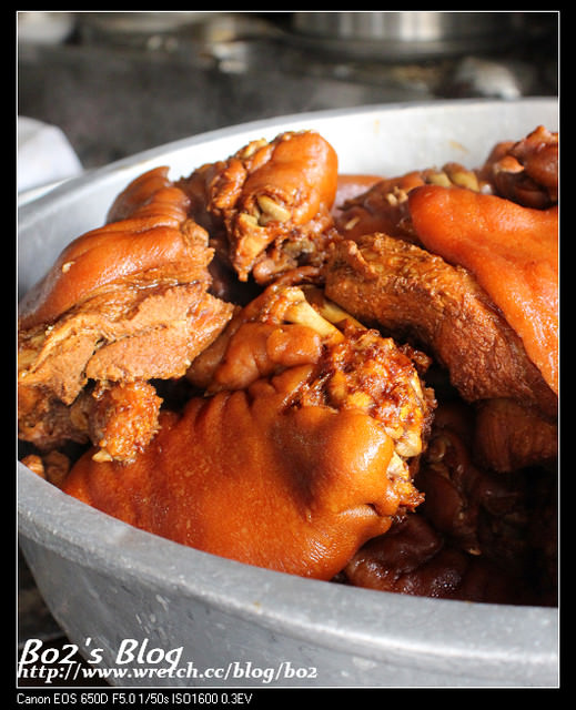 角落一隅,陣陣醬油香氣直撲鼻而來,原來是剛滷好的豬腳出爐囉,