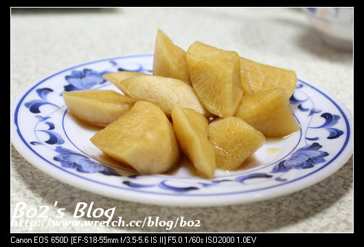 看似質樸,原來是口感爽脆,滋味又很鮮甜的醃蘿蔔,是很清爽開胃的前菜。