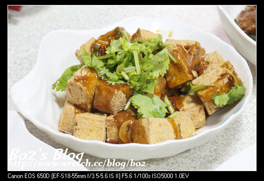 炸豆腐切的方方正正,炸的外皮香脆內裡軟嫩,搭上鹹甜鹹甜的特製醬汁,