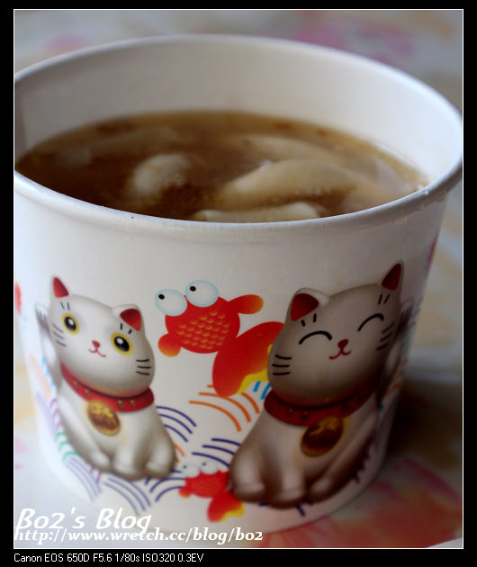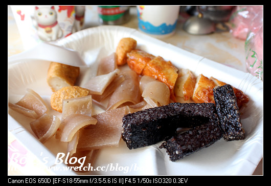 黑輪跟米血可選一般水煮或是用炸的,有炸的這種黑輪攤雖不是沒有,但也算不多見,所以我都選用炸的,吃起來口感米血稍硬,