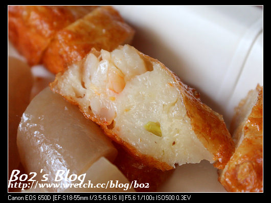 倒像是菜市場買的到那種外面有一層薄皮,裡面加了魚漿的捲類,