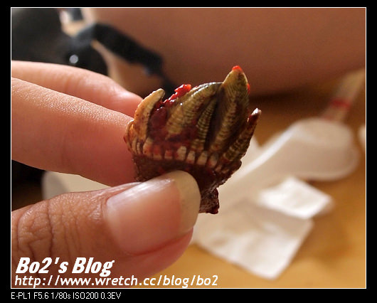 剝開就需要費點力氣,肉也沒有一般貝類來的多,但吃起來有海鮮的甜味,口感有點像肉不多的蛤仔,