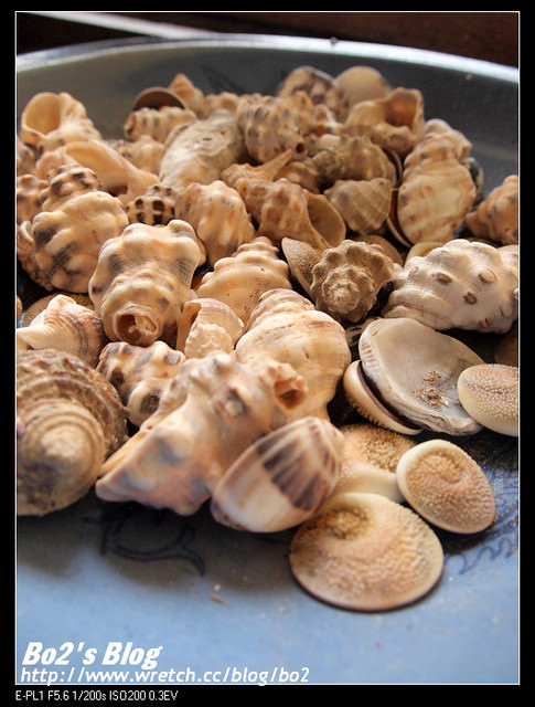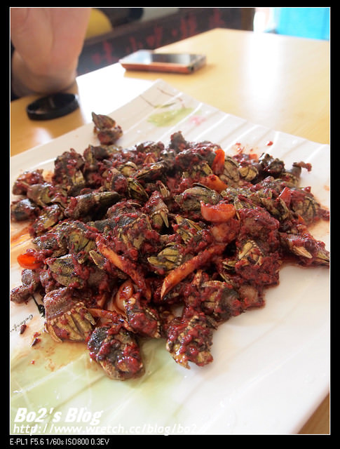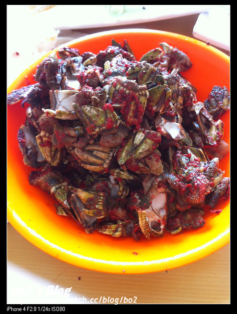 原本又想點淡菜,但突然玩性大發的隨口問老闆還有沒有其他別的,所以就出現了這道炒佛手,還是紅糟口味的呦。佛手雖然也是貝類的一種,但外型呈不規則狀,而且個頭不大,