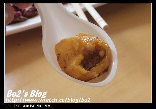 有點像地瓜球,一不小心咬下就會爆漿,口味偏甜,還蠻好吃,甜食鬼會很愛。—————–【小詠美食度量表】☆此為個人主觀看法..僅供參考☆美味度:★★★★☆