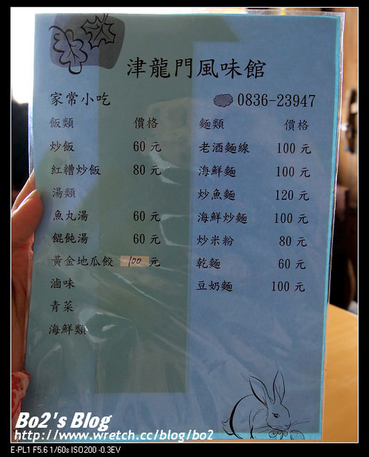 —————–餐廳:馬祖.南竿-津沙村津龍門風味館地址:馬祖南竿鄉津沙村61號電話:(08)362-3947/0911761505用餐日期:2012/10/07價位:(本價目僅供參考,正確價格以店家為主)