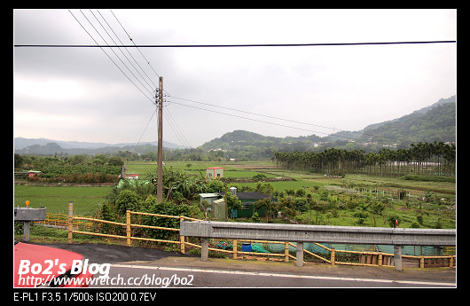 雖然天候很差,但是一眼望去都是翠綠色田野,遠處山腰餘煙裊裊,