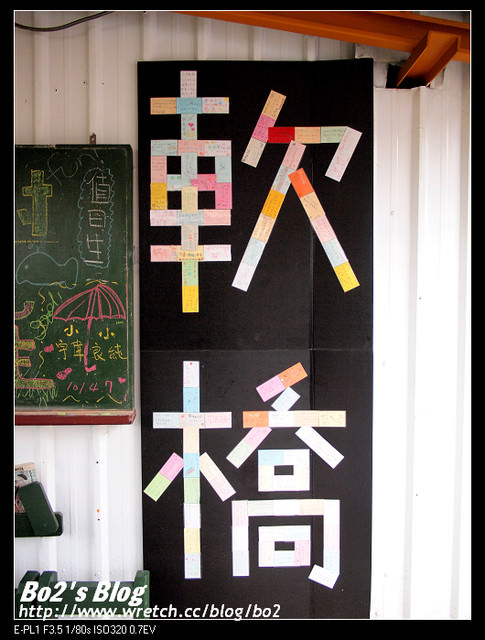 繼續走有個中繼站,裡頭標的是用紙條貼成的軟橋字樣,十分有創意跟巧思,