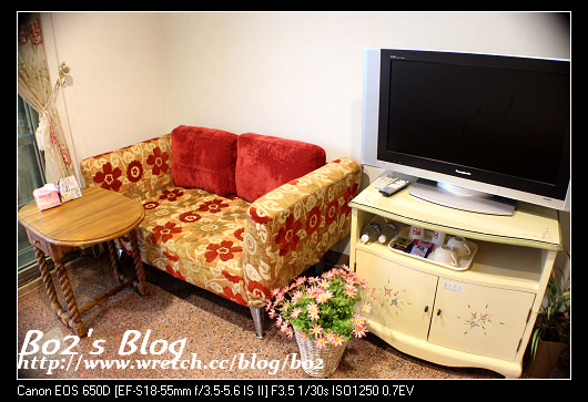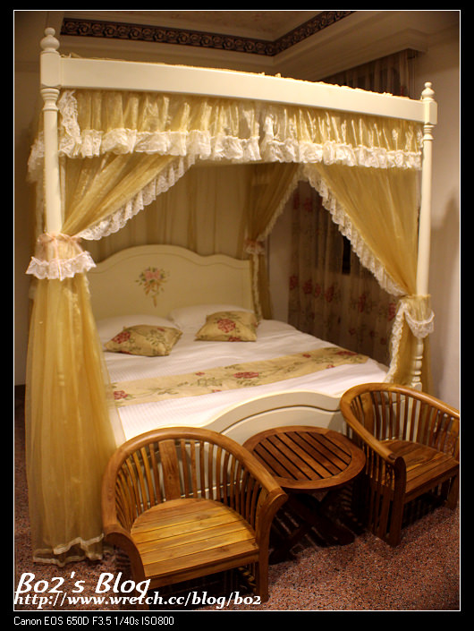 沙發椅及木頭桌椅,還有浪漫沙帳的公主床,看了我鋼鐵般的心都快融化了說。
