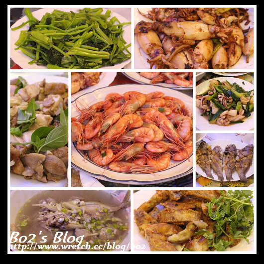 蝦子/魚/章魚/烏賊就不用說,還有當地特色菜芋頭跟空心菜,
