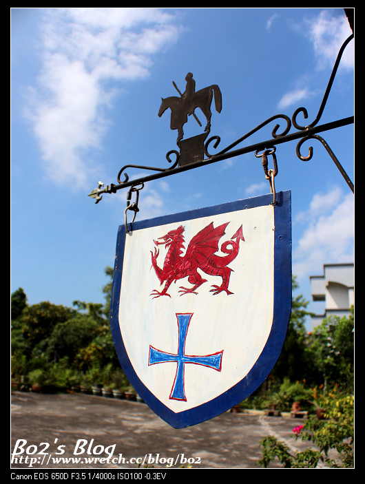 屋外的手繪中世紀旗幟雖不是很精美,卻感覺的到老闆的玩心。