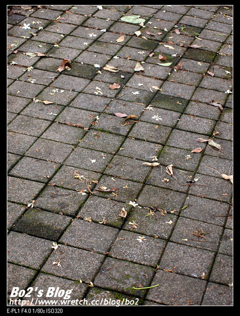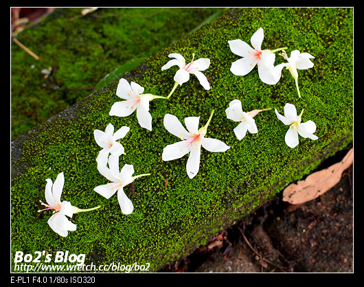 雖有三五朵散落,但卻沒有“油桐花盛開,可見白色油桐花毯鋪滿步道”這個盛況,