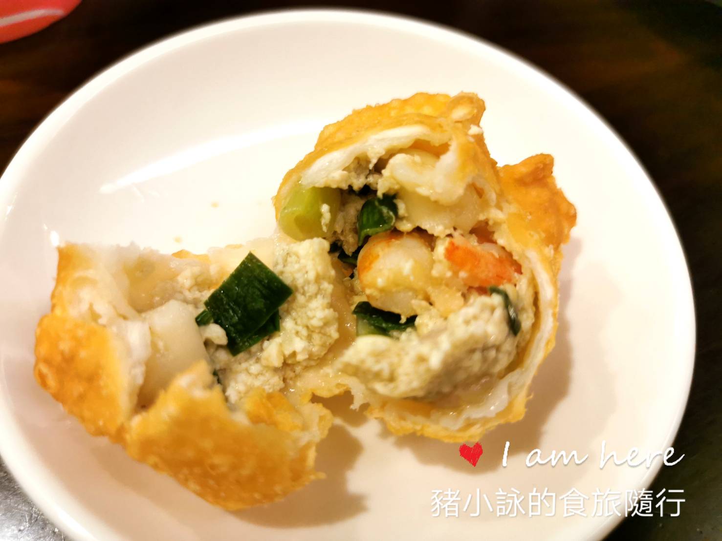 外皮炸的酥脆,裡頭包的是切碎的臭豆腐,還有蝦子,很讓人意外,