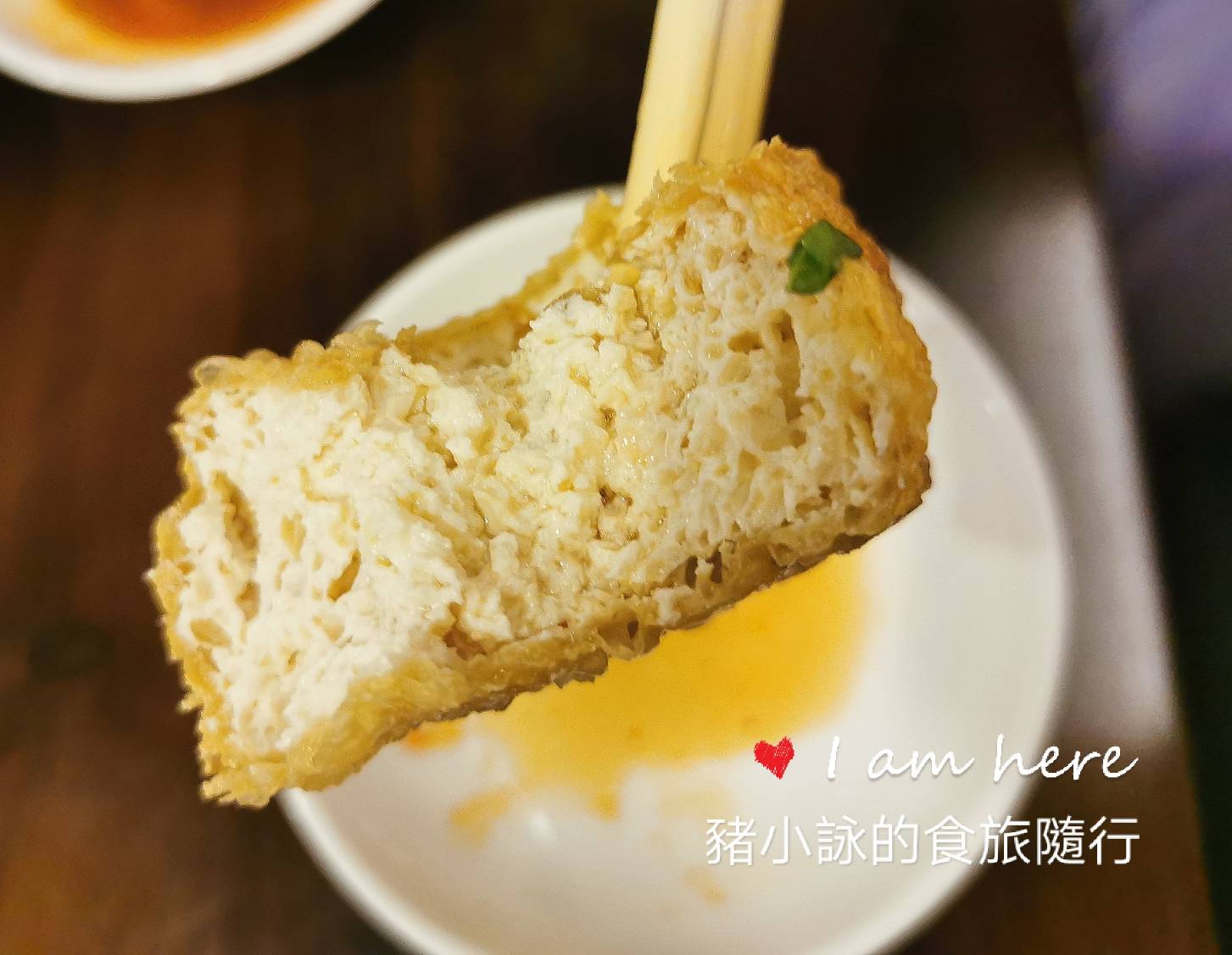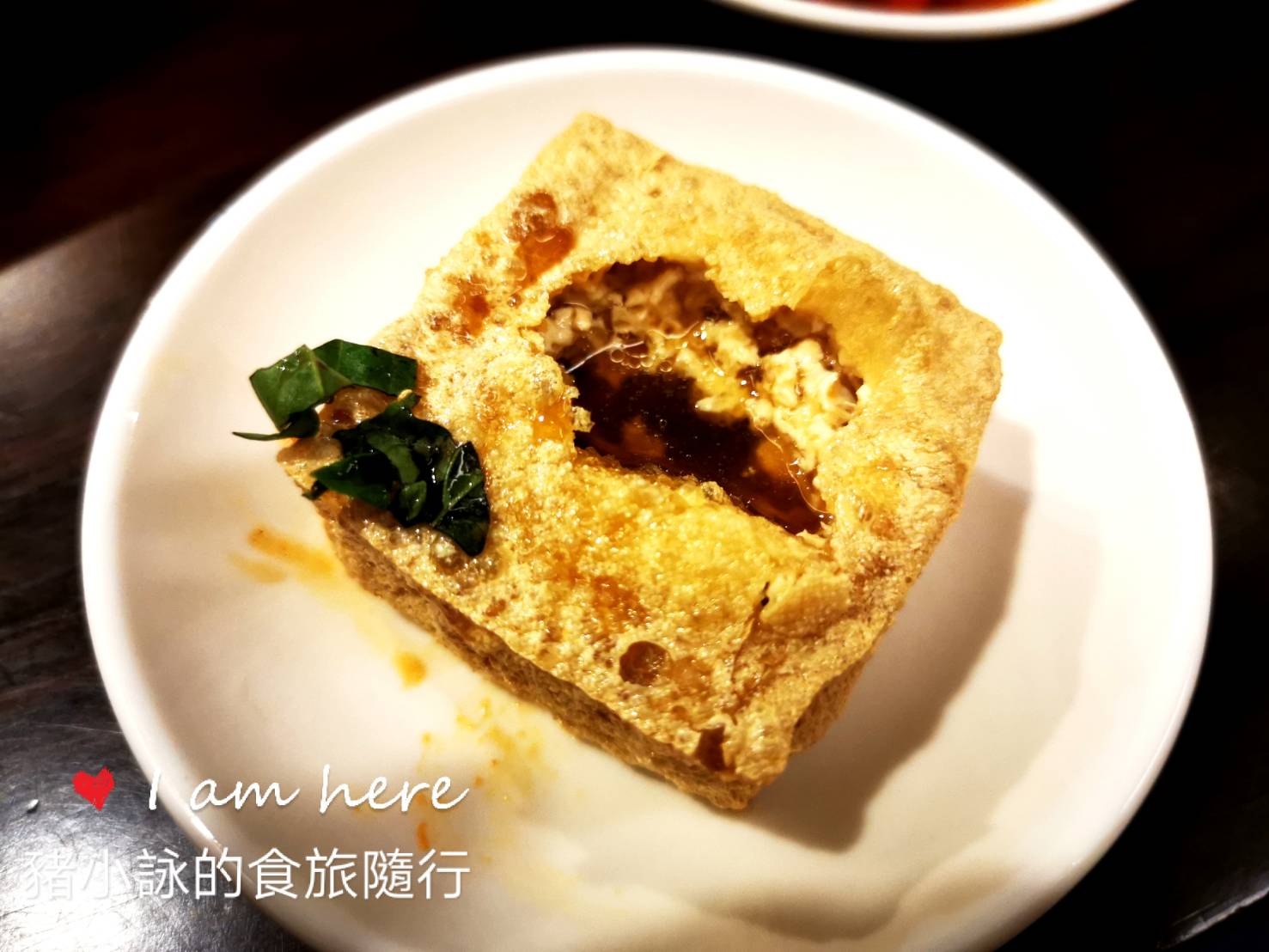 臭豆腐上面的是九層塔細末,一口咬下,滿滿的湯汁跟香氣一其迸發,也很好吃。